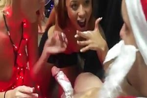 Мерзкий Санта собирается сделать несколько минетов от озорных девушек, пока он не взорвется от удовольствия